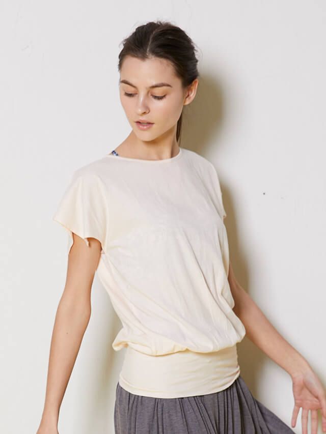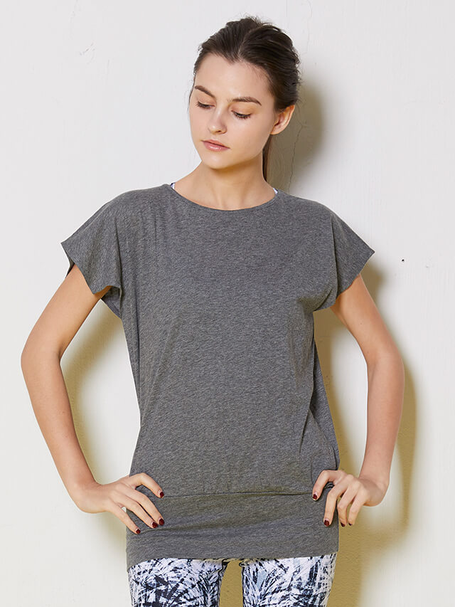 短すぎず、長すぎない絶妙な丈感のプルオーバー。裾の太めの切り替えにより腰周りでしっかりフィットするので、逆転のポーズにも対応しています。