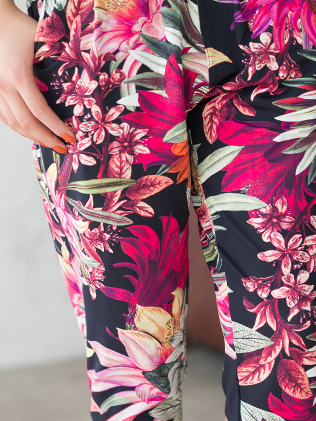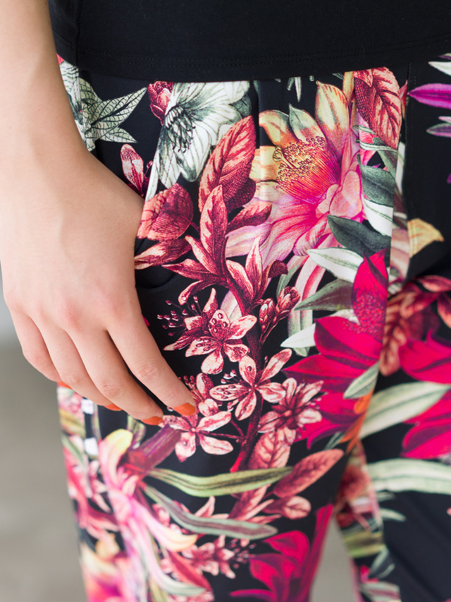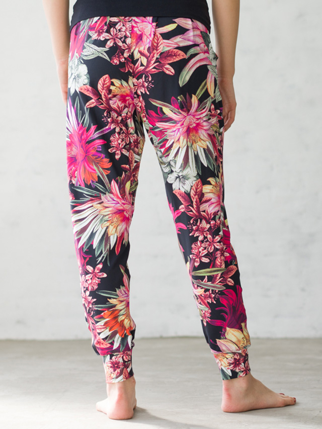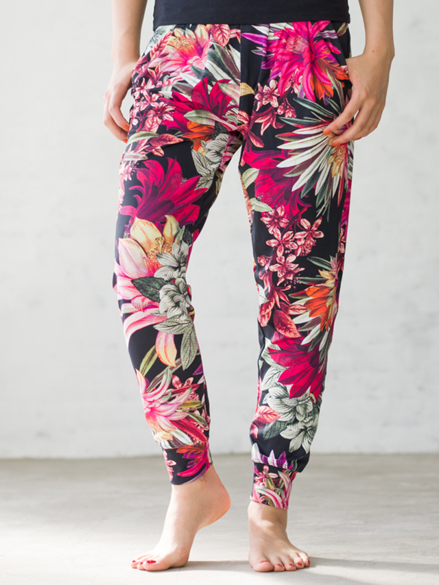 大柄で華やかな女性らしいプリントが人気のブルーミングソウルナイトに、リラックス感を持たせつつスタイリッシュにまとまる新ゆったりパンツが登場!