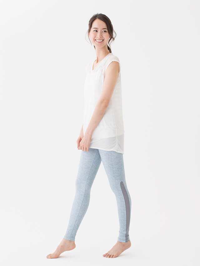 コーディネートのしやすさで誰もが馴染みのあるデニム風のレギンス。見た目はレギンス風でも、大変ストレッチ性の高い素材を使用しており、動きやすさ抜群。軽量で履き心地も爽やかです。
