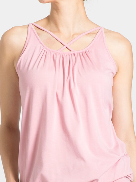 ふんわりしたシルエットでも裾はタイトで止まるデザインなので逆転のポーズでも安心です。シルキーで上品な光沢があり、淡い色合いだと心配な汗染みを防止する加工をプラスしています。