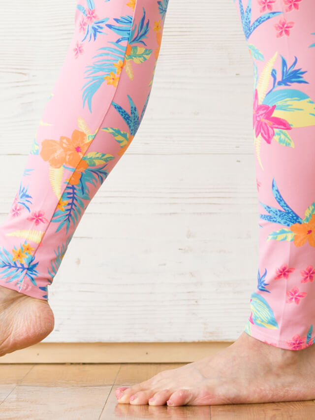 ボタニカルフラワーが可愛いらしく、ピンクでスイートな気分に包まれて素敵なヨガタイムを楽しめそう。普段選ばない色や柄に挑戦できるのもヨガウェアならでは。視覚からピンクの優しさを感じて下さい。