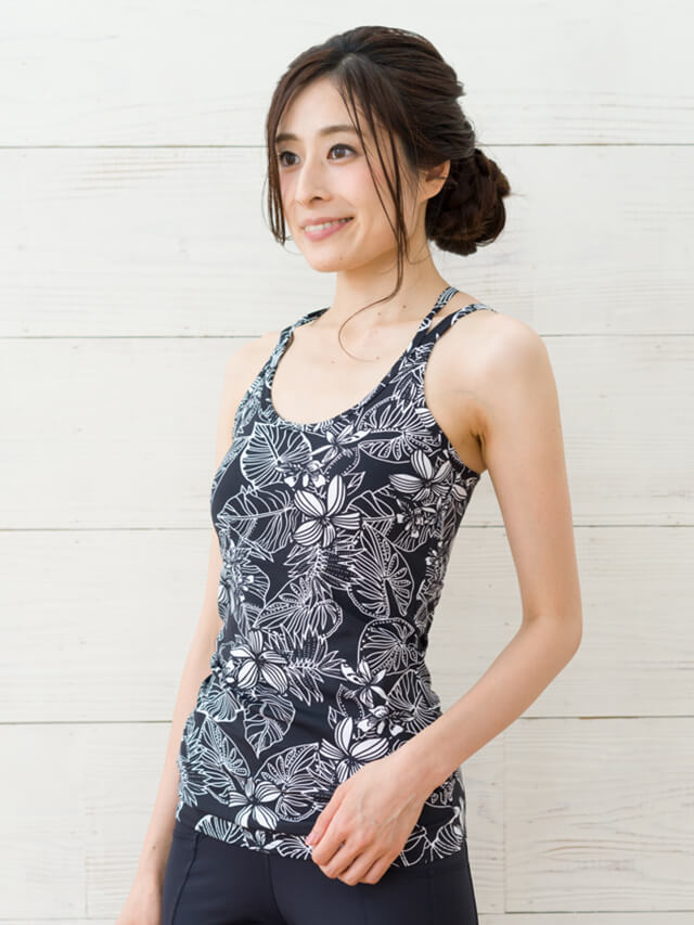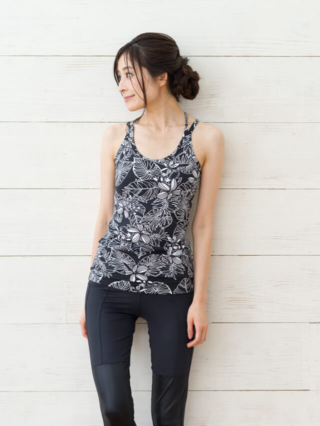 リンダワークスの中でも人気の高いフラワーリーフプリント。サマーモノトーンでクールなコーディネートができ、柔らかく軽い着心地はヘビーローテーション必至です。