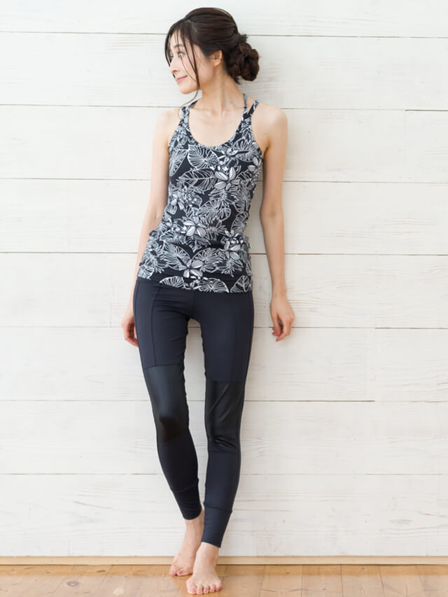 - ブラックのレギンスと合わせてモノトーンコーディネート