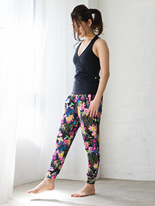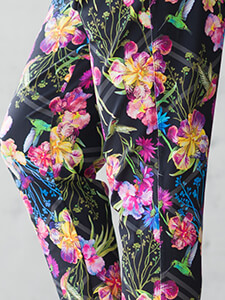 着るだけで気分が上がる、ブラック×花柄プリント「ハミングバード」。ビビッドな花柄も大人っぽく着こなせます。