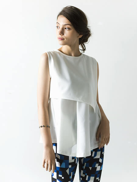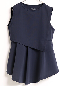 発色性・吸水速乾・清涼感に優れた高級素材「トリアセテート」を使用したこだわりの詰まったノースリーブカットソー。デザイン性の高い切替えデザインで他の人と差をつけて。美しいニュアンスカラーも大人っぽく決まります。アクティブにもタウンユースにも着られるような着心地と機能性を追求したヨガウェアがコンセプトのグラズ・レスピレらしい一枚です。