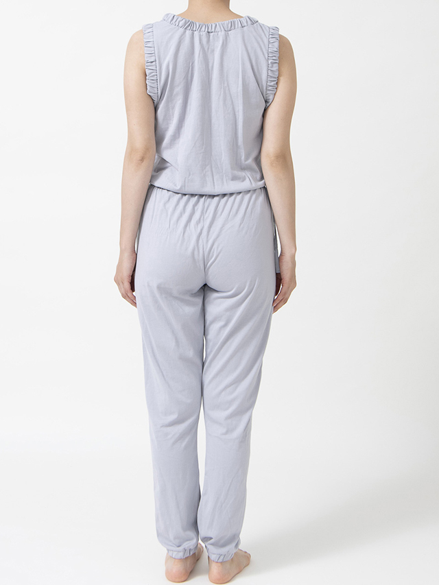 - 一枚でコーディネートが決まるオールインワン。ロングカーディガンを合わせたスタイルもおすすめ。