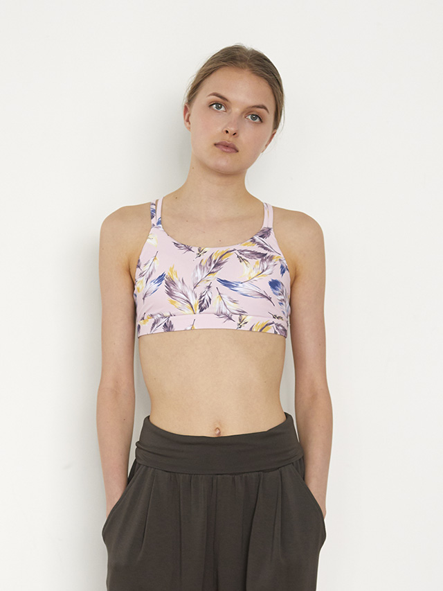 今シーズンのテーマのネイティブアメリカンを彷彿させるフェザープリント。ホットヨガ、サップヨガなどにも最適なブラトップ。