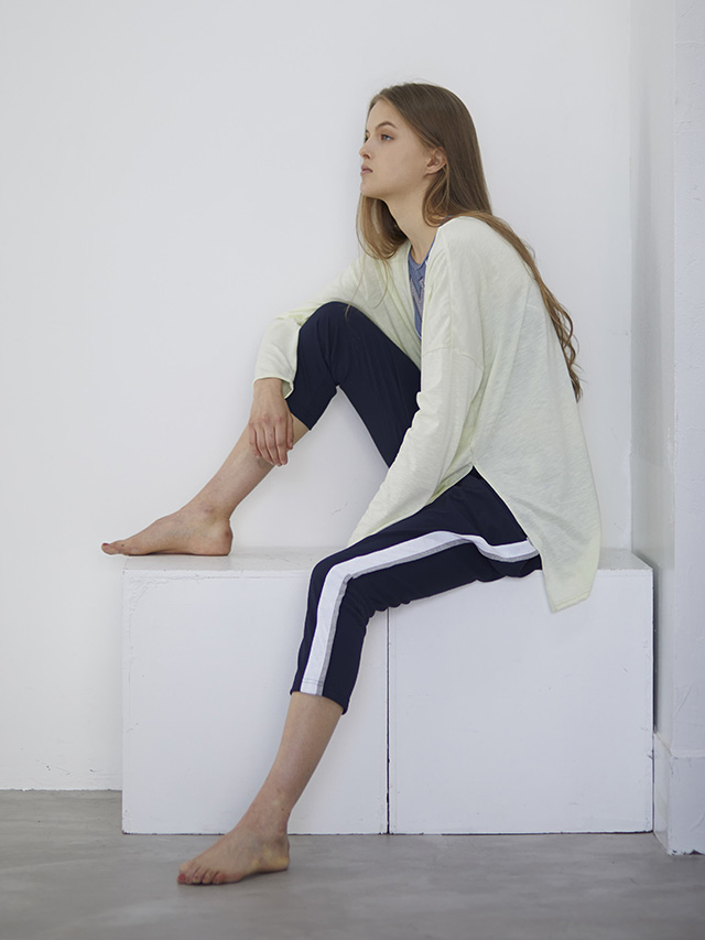 腰まわりはゆったりとカバーし、裾はクロップド丈で重くならずすっきりとしたラインに。