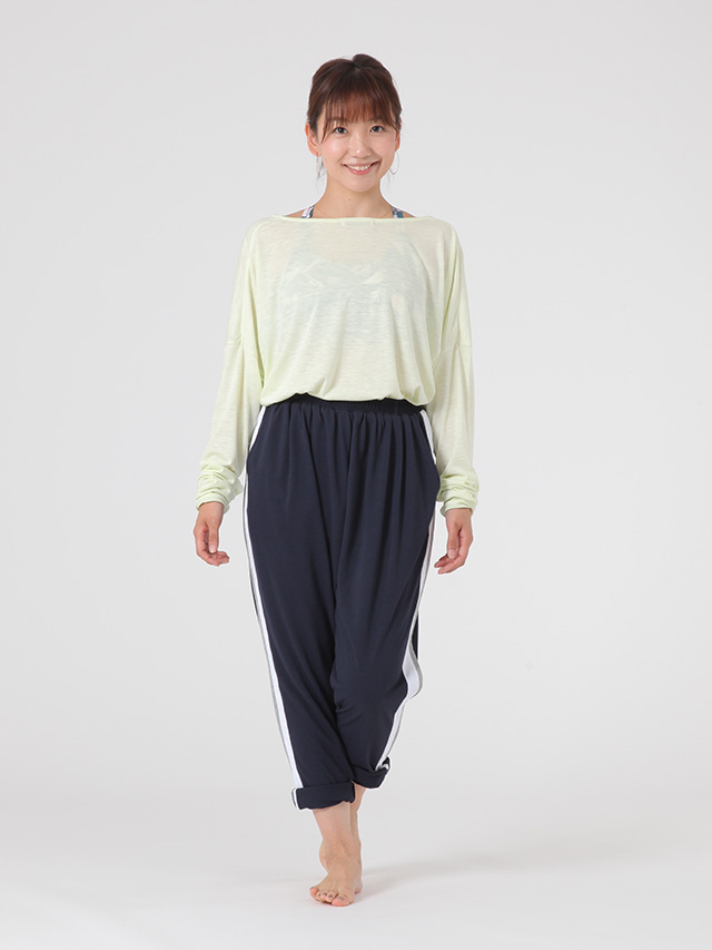 サイドのラインが特徴的なパンツ。ヨガやワークアウトはもちろんデイリーでもオシャレに着こなせるアイテムです。