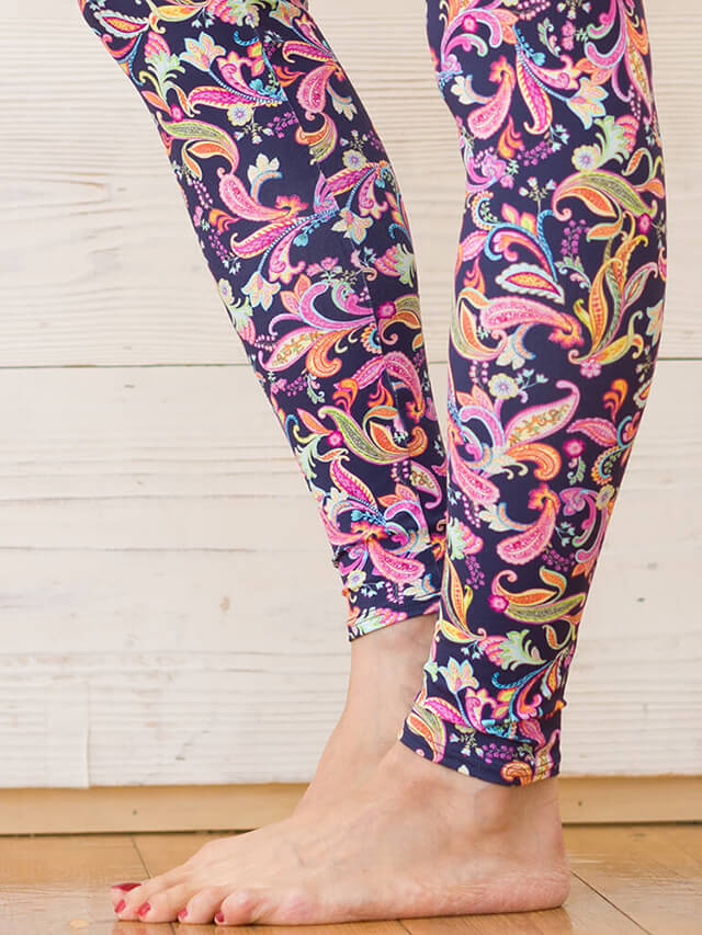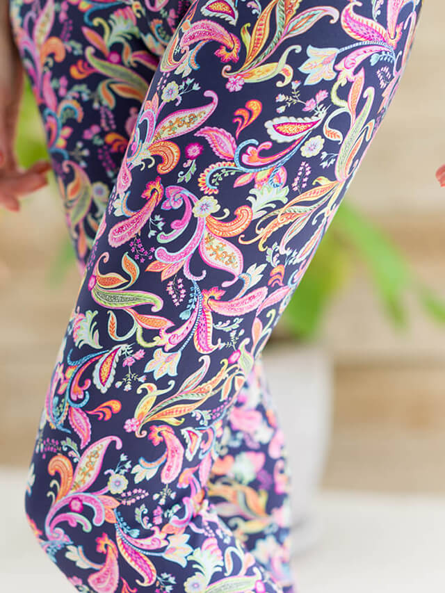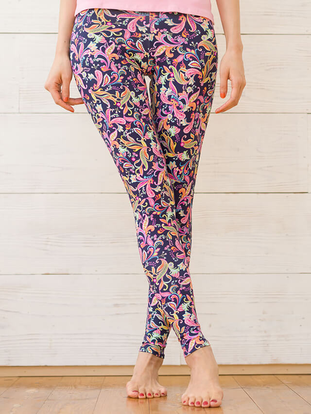 細やかなペイズリー柄が上品なレギンス。シックな色使いでコーディネートをぐっと格上げしてくれます。