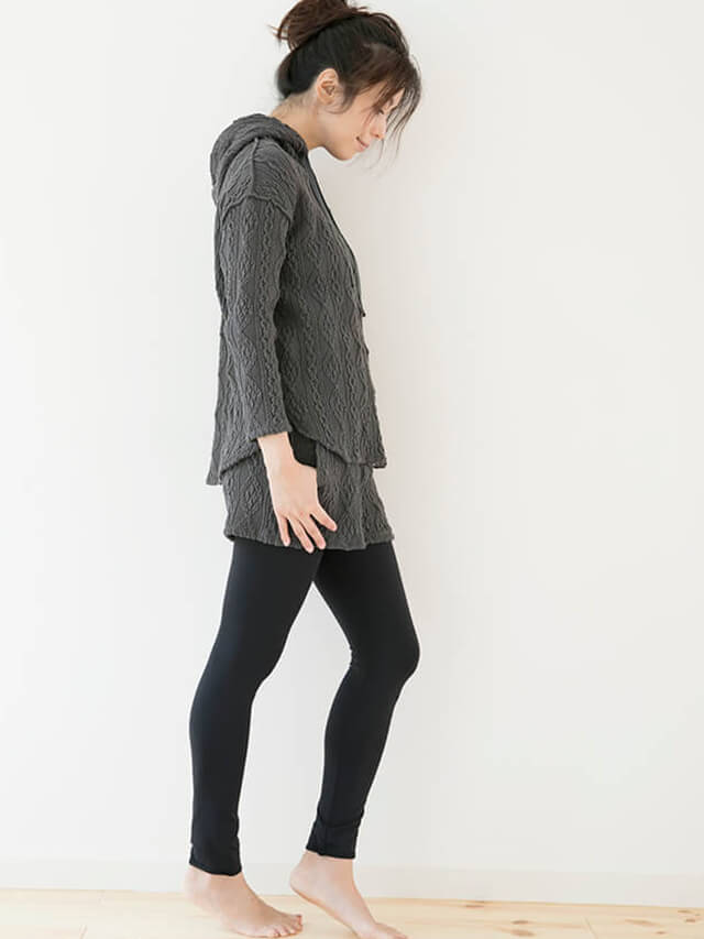 - ヨガの時にはレギンスをあわせてご着用いただくのがおすすめ