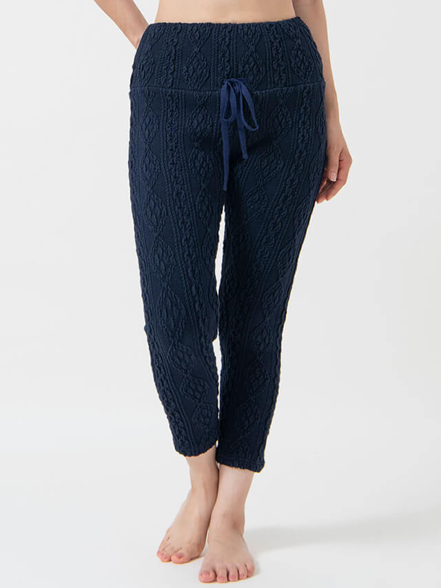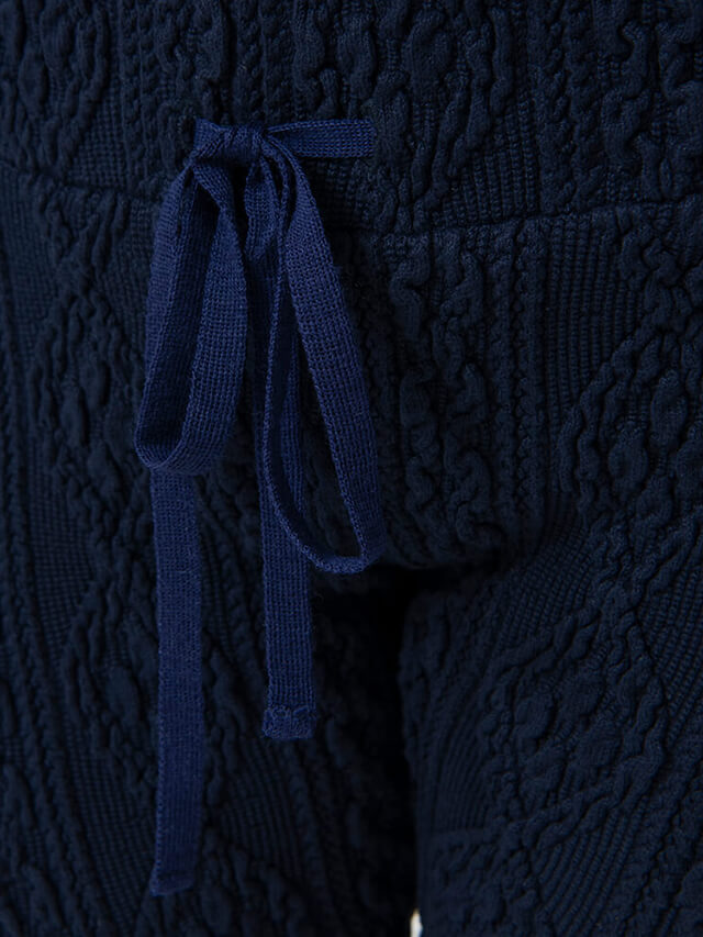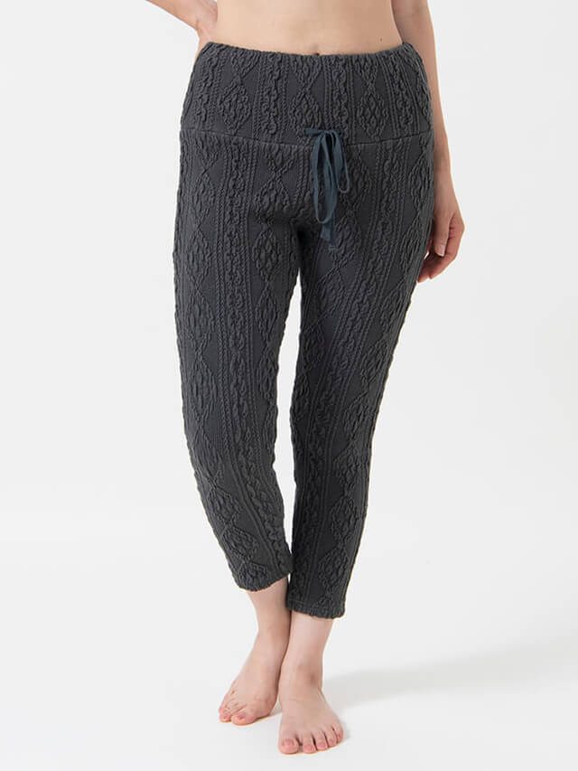 ジャガード編みでニットのようなケーブル模様を表現したクロップドパンツ。トレンド感溢れるコーディネートに仕上がります。