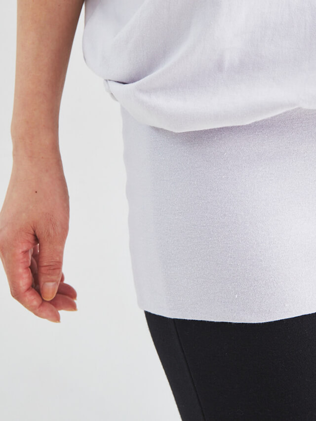 ボートネックで胸あきの心配、フィットした裾でめくりあがりの心配のないデザイン。5分袖なので二の腕をカバーしてくれる効果も嬉しい。繊維の一本一本が細かく繊細なため、柔らかく艶やかな光沢が特徴で上品さをアップしてくれます。身頃はルーズシルエット、裾はフィットでスタイルアップを叶えるチュニックです。