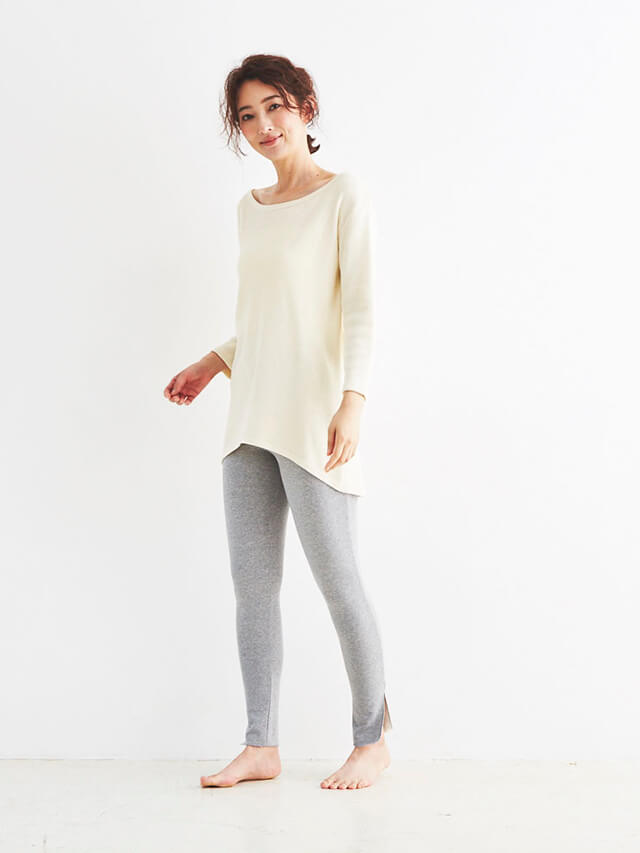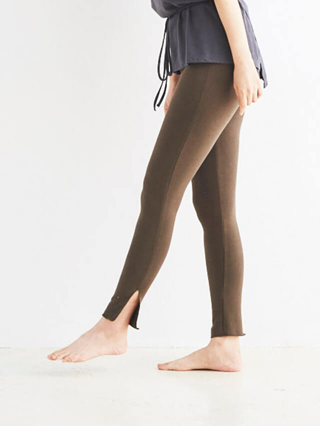 ぴったりレギンスが苦手な方におすすめ。足首のゆとりがふくらはぎをカバーして、アンクル丈にスリットデザインが足首を強調して脚長効果をプラス。