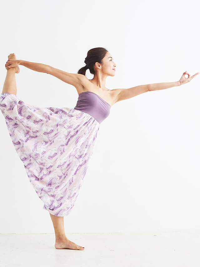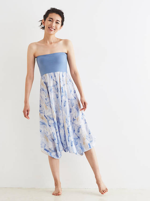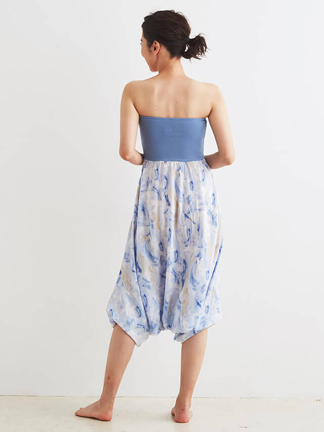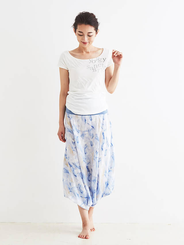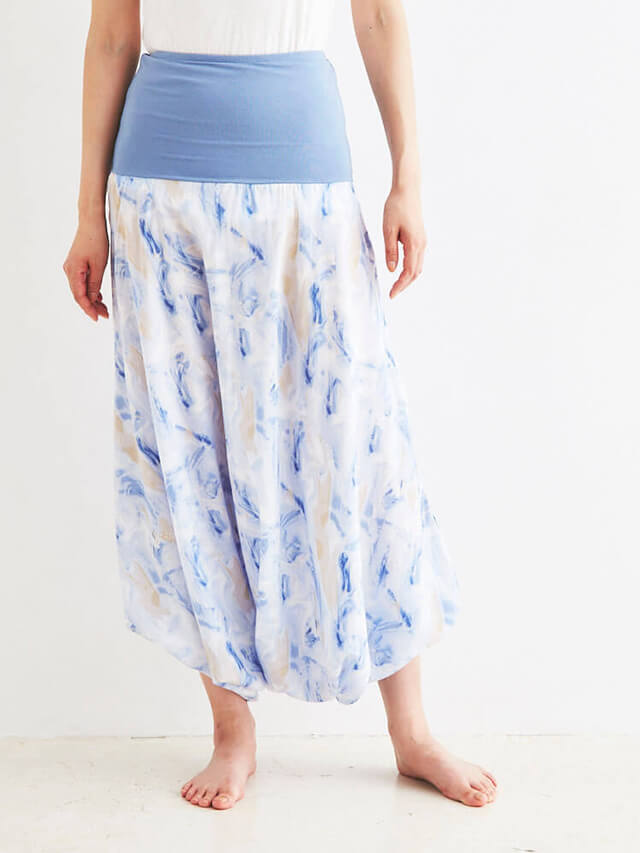 2wayデザインで幅広く使える定番人気のジニーパンツにマーブル柄が登場。通気性、肌触りよい素材が歩くたびに揺れて気持ちいい。足を広げるポーズもひっかかることなく快適に動けます。