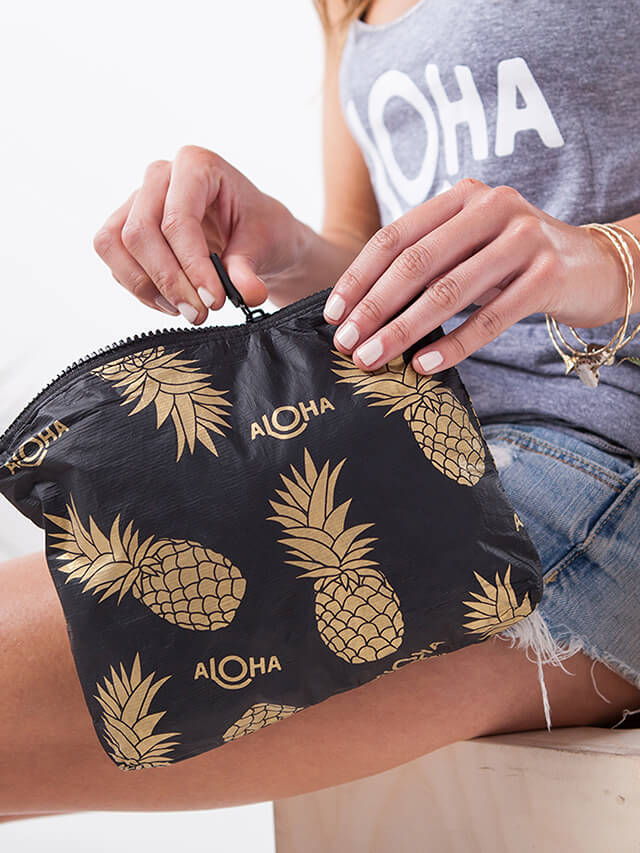 ALOHA COLLECTION デビュー当時から変わらぬ人気のパイナップルプリント。Sサイズは使い勝手の良い普段使いにぴったりの大きさです。