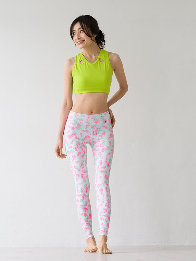 ミディアム丈で露出が少なめ、着回し力抜群のブラトップの新登場。プリントレギンスと相性が良いのはもちろん、デイリー使いでもポイントになる1枚です。