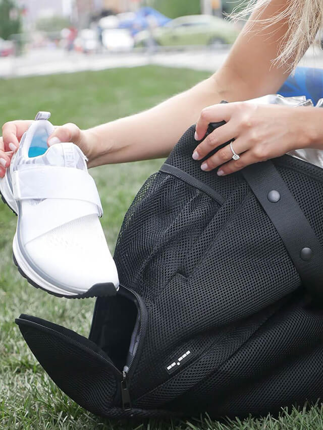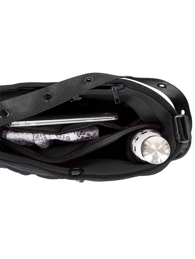 GO DASH DOTが世に広まるきっかけとなった代表作インフィニティバッグは、ファッション性と機能性を兼ね備えています。シューズやヨガマットを他と分けて収納できるよう設計されており、仕事終わりのジムやヨガに最適。バッグの内部にはパッド入りのノートPC収納スペースがあるので仕事バッグとしてもおすすめです。エコボトルも縦に収納るので安心して持ち運びができます。