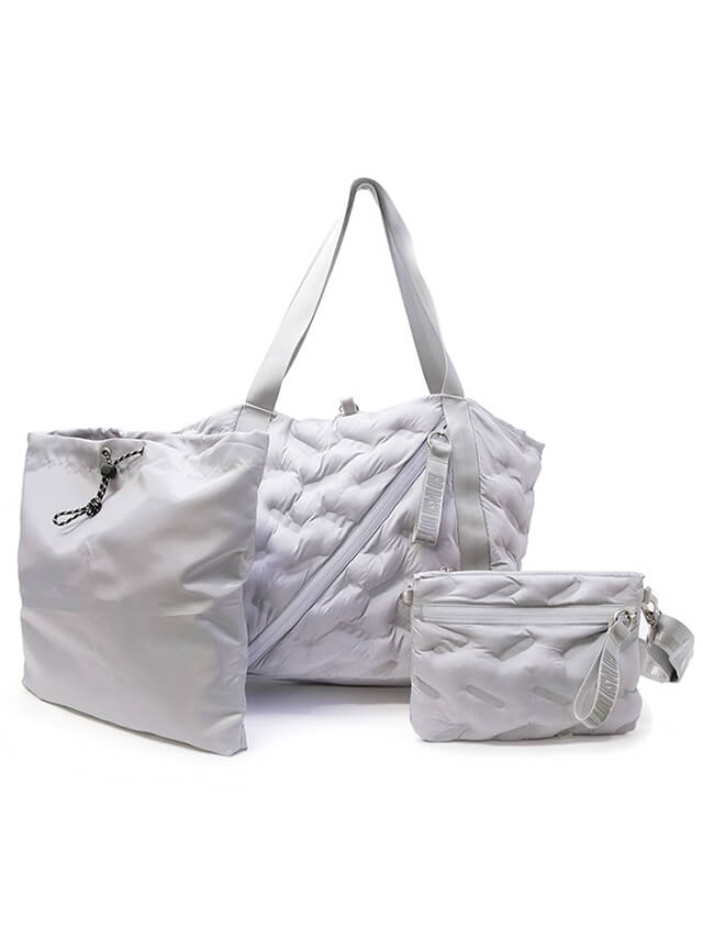 立体感のあるPUFFY NYLONを使用したトートバッグ。ファッション性と機能性を兼ね備えており、ヨガに行く日も行かない日も使いやすいシンプルな作りになっています。