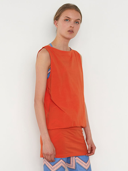 - トップスはコットンベア天バッククロスチュニックのオレンジ色