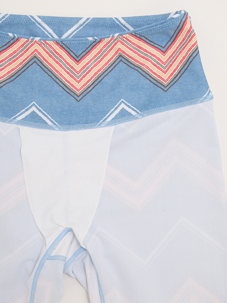 ボトムスは印象的な「シェブロンプリントレギンス」。デザイン性が高く、おしゃれに着こなせるアイテムです。ジュリエレギンスの特徴である、内側にコットン素材のマチが付いているのでアンダーウェアなしで着用頂けるデザイン、インナーラインや重ね着時のごわつきが気になる方にもおすすめです。水着素材を使用した水陸両用のジュリエ定番素材なので、ホットヨガやサップヨガにもおすすめです。