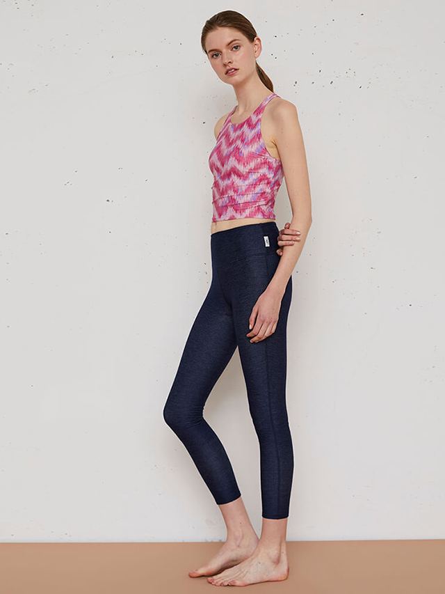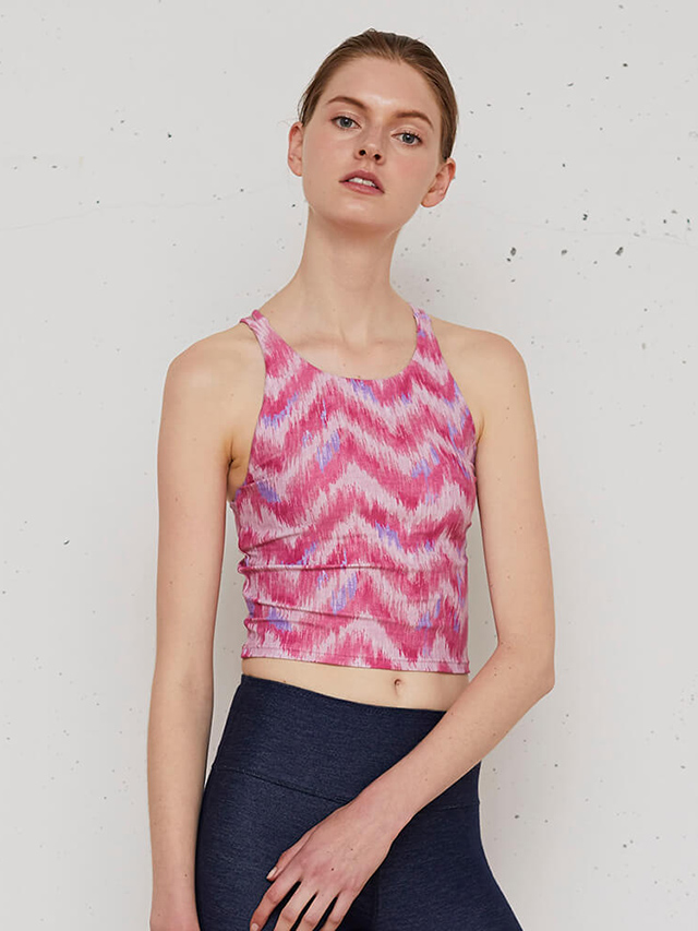 程よい丈感のショートトップスでトレンドのヘルシーな肌見せスタイルにチャレンジ。人気のトライバルプリントがコーディネートのポイントです。水陸両用素材なのでホットヨガやサップヨガ、水着にもおすすめです。