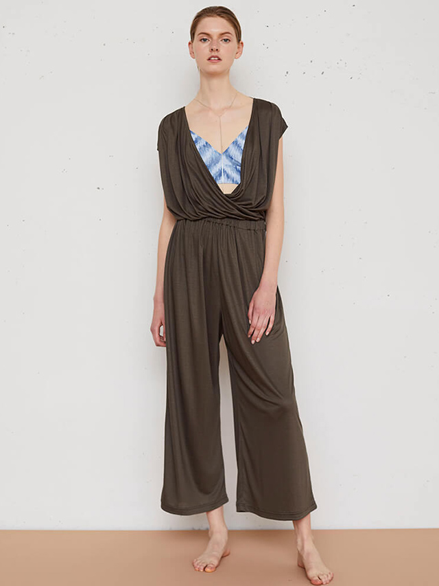 バックスタイルがポイントのブラトップは背中が開いたデザインのトップスを合わせて、 コーディネートをお楽しみいただけます。胸の開きは下がりすぎない安心デザイン。同柄ボトムスと合わせてセットアップコーディネートやインナーとしてご着用頂けます。