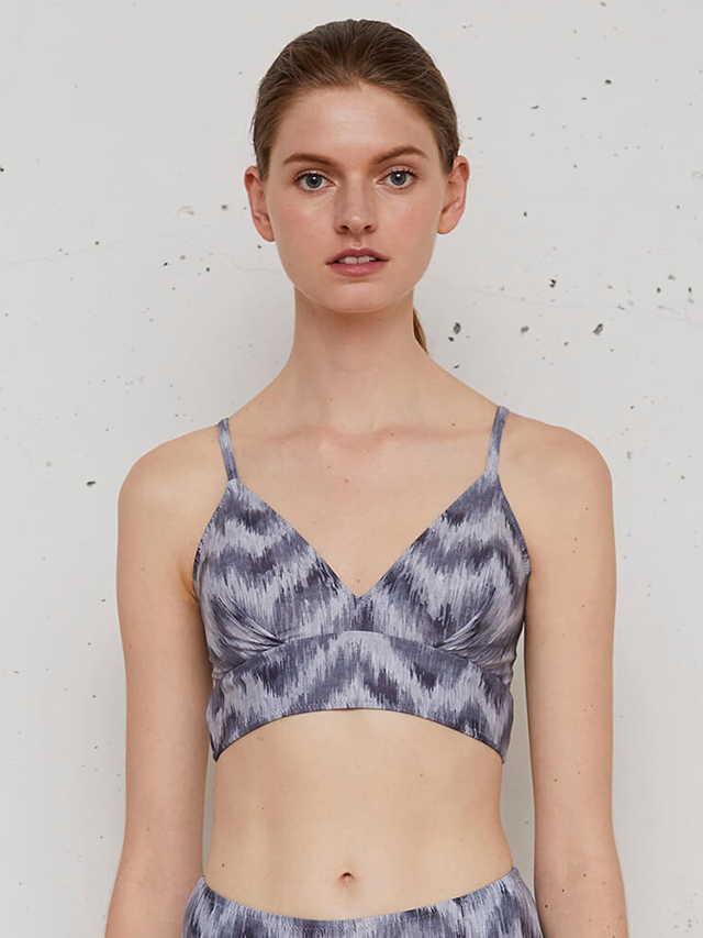トライバルプリントがクールな印象のブラトップ。トライバルプリントはジュリエがオリジナルで作成しています。 民族柄を筆でかすれたジグザグで表現し現代風にジュリエらしくアレンジしています。