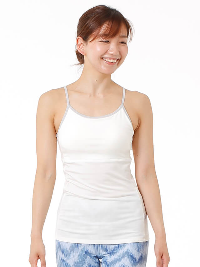 薄手で高機能なうえにマイクロファイバーのため肌触りの良いソフトな風合いはヨガシーンだけではなくデイリーのインナーとしても使いたいキャミソールです。