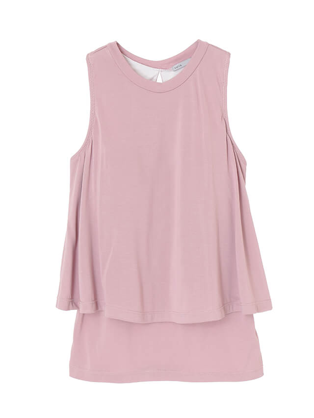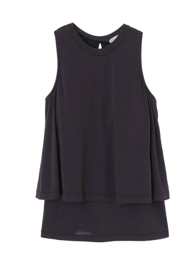 2枚仕立てのブラパッド付タンクトップ。フレアデザインが気になる腰回りもカバーしてくれます。
