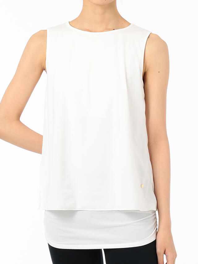 シンプルでフレア感が女性らしいレイヤードトップ。超軽量素材で軽やかな着心地です。