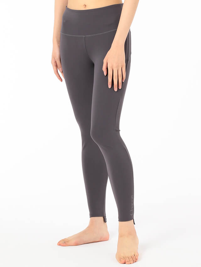裾のブランドロゴや段差のあるデザインがシンプルながらひと味違うレギンス。シンプルながら優秀なアイテムです。