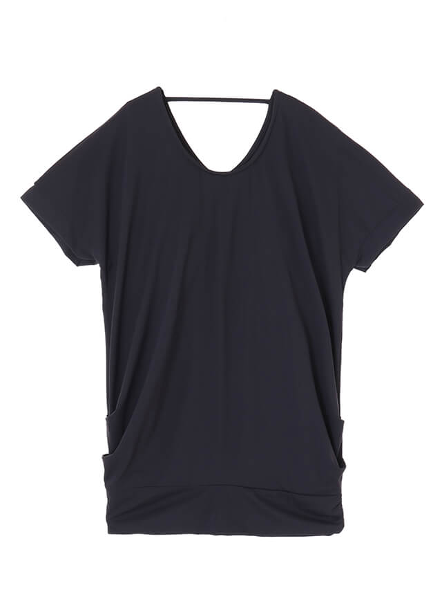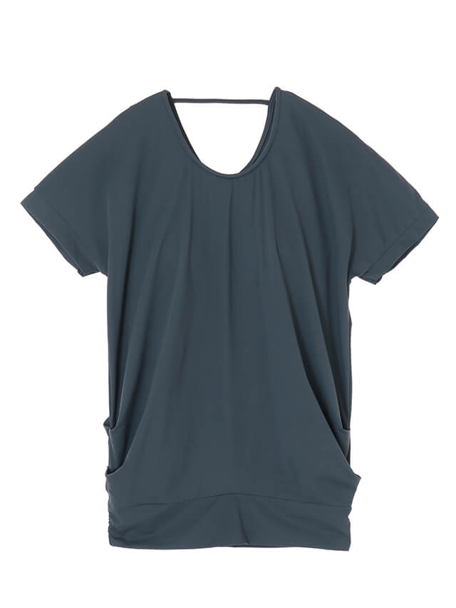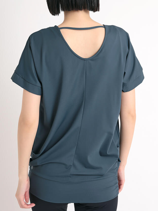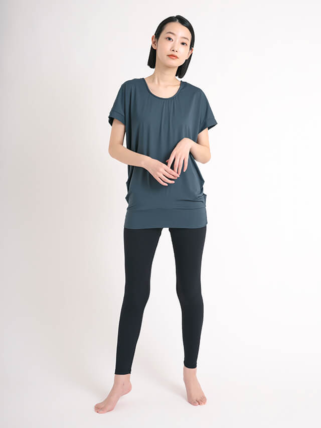 サイドにたまるドレープがエレガントで、お腹周りを自然にカバーしてくれます。裾の切り替えデザインでめくれ上がらずポーズに集中することができます。柔らかく上品な艶のある素材も魅力です。
