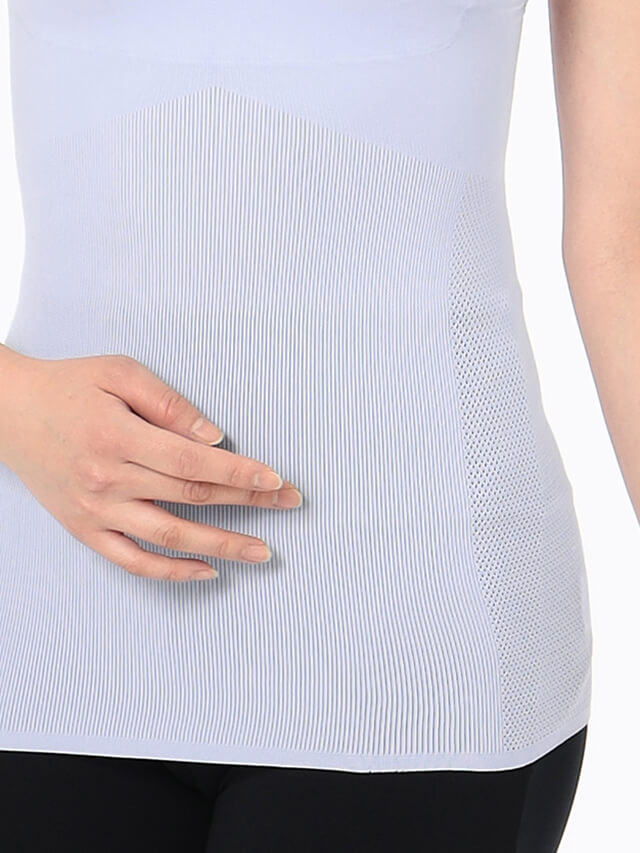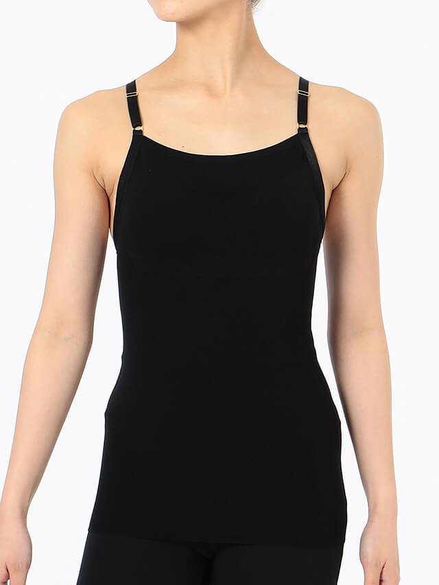 縫い目のないストレスフリーな着心地、軽くて吸い付くようなフィット感が特徴。一部、縫製を加えてカップ差し込み型のブラキャミソールに仕上げた1枚。