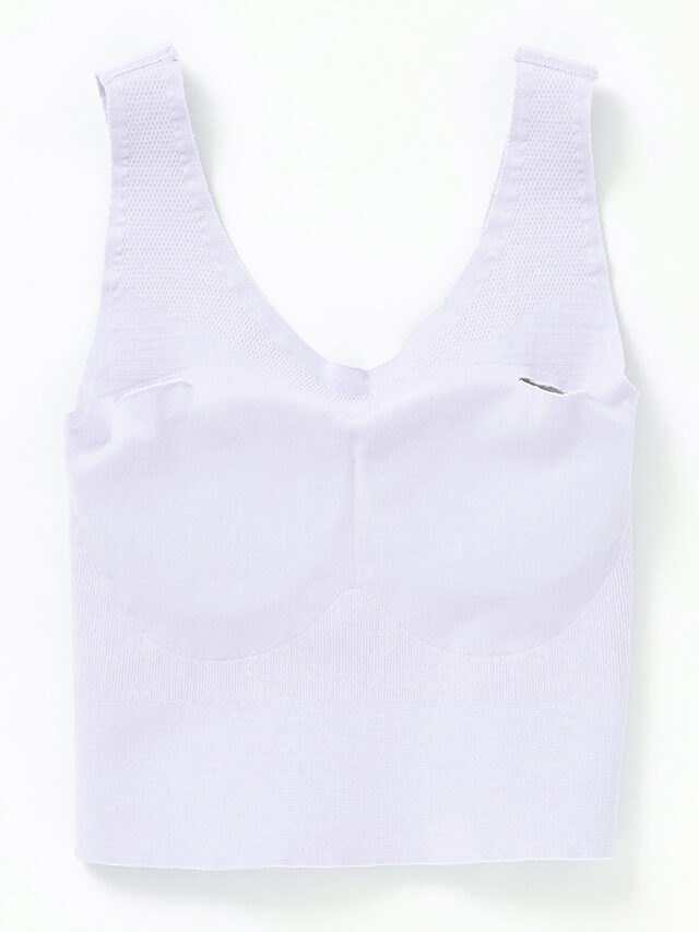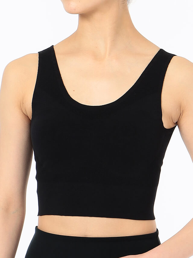 ノーソーイングニットのハーフトップ。ゴムを入れず生地のストレッチ性のみで胸を支えるため不快な締め付け感無く着用できます。また、締め付け感はありませんが二重構造の為しっかり胸をホールド。