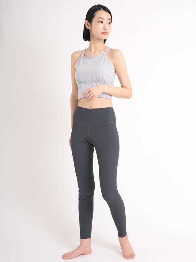 ナチュラル素材の長めの丈のブラトップ。パッド縫い込み仕様により綺麗なシルエットを作り出します。