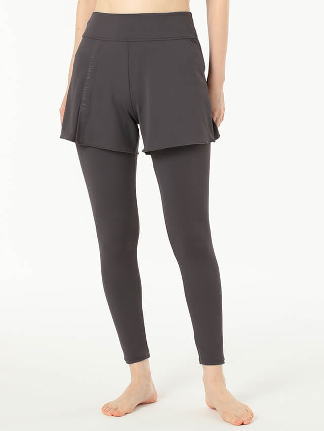 ショートパンツとレギンスを合わせたボトム。chacottのブランドロゴがさりげないデザインポイントです。
