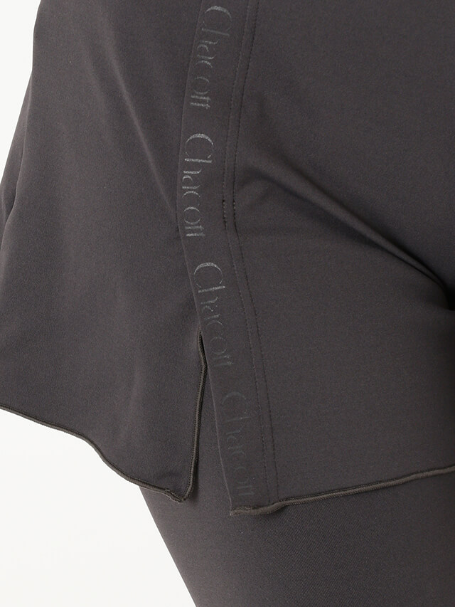 ショートパンツ部分は、ほどよくゆとりのあるシルエットで体型をカバーしたい方にもおすすめのアイテム。ショートパンツの右前にはスリットが入っており、chacottロゴのワンポイント入り。ロゴは生地と同系色なので主張しすぎずさりげないポイントに。