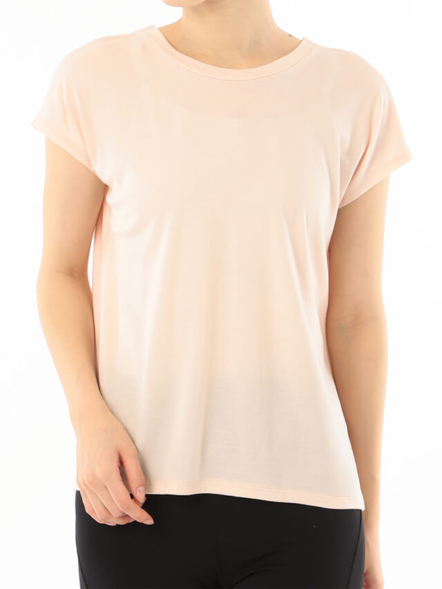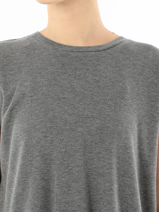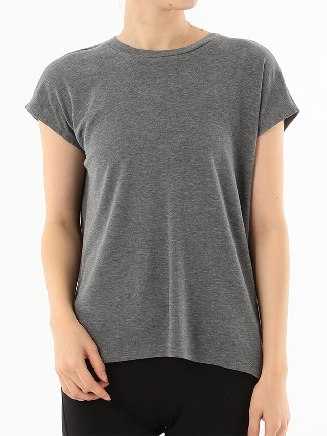 フロントはシンプルながらバックのデザインが女性らしさをプラス。背中をきれいに見せるV開きのデザインで、なだらかに後ろ下がりになったヘムラインがヒップラインをさりげなくカバーしてくれます。レギンスのカバーアップとしても、タウンユースにも使用できるアイテム。