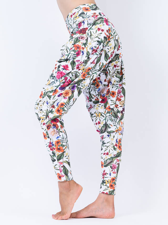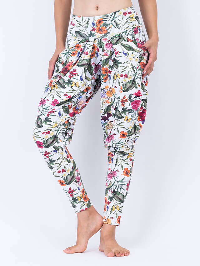 - キュートなボタニカル柄。スローチーパンツなら下着の透けも気になりません。