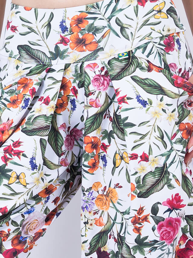 リンダワークスで人気のホワイトベースxボタニカルプリントの組み合わせ。ハイビスカスやプルメリアなど南国に咲く花たちの間には蝶々が飛んでいてとってもハッピーな雰囲気。着る人も見る人も幸せな気分にさせてくれます。淡い色のトップスと合わせてフェミニンに着こなすのがおすすめです。