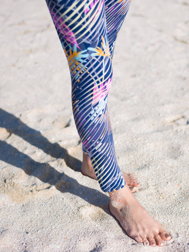 ヤシの木の葉っぱが独特な直線的なラインを生み出したネイビーベースの「チルアウト」体のラインをすっきりとみせてくれる効果も期待できます。