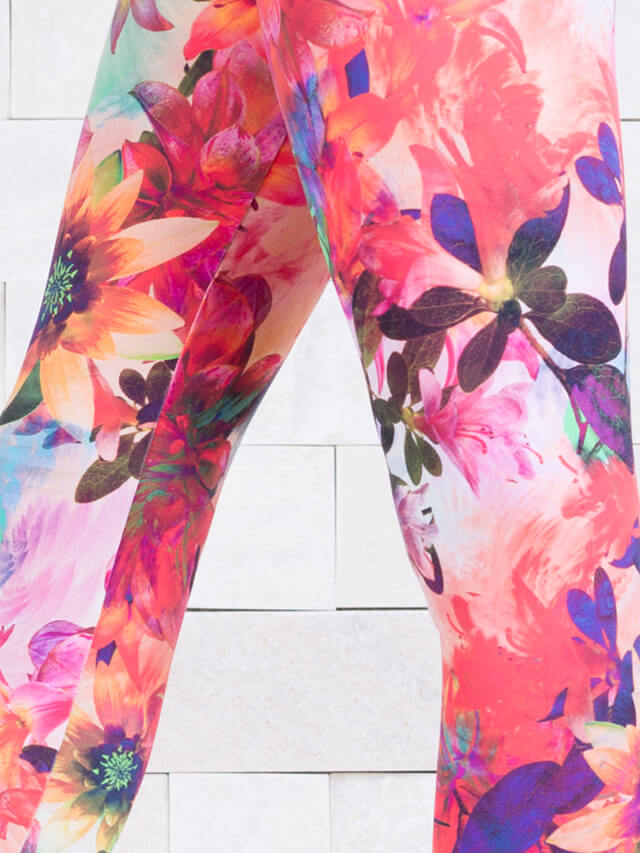 ピンクとオレンジのカラフルな花々たちがプリントされています。