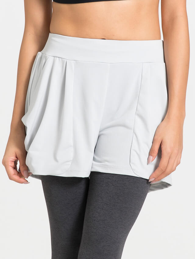 両サイドのドレープが美しいショートパンツ。柔らかでストレッチ性がありながらもシャリ感のある素材。見せたくないラインをカバーするだけでなく、コーデを格上げしてくれます。裾幅にゆとりがあるので、太ももをスッキリ見せてくれる効果も。レギンスのレイヤード用におすすめです。