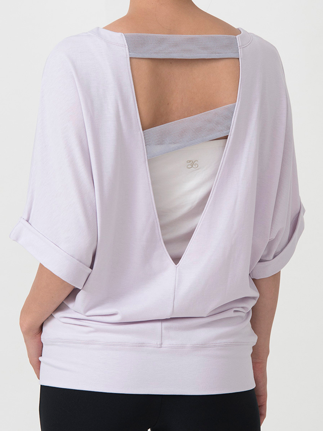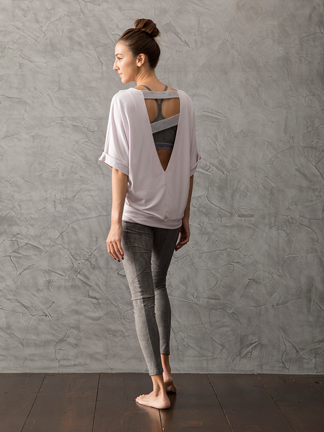レギンスとのコーディネートにオススメのチュニックはバックスタイルがポイント。メッシュ使いと大きくV字に空いた背中のデザインが大人っぽさとしなやかさを演出してくれます。