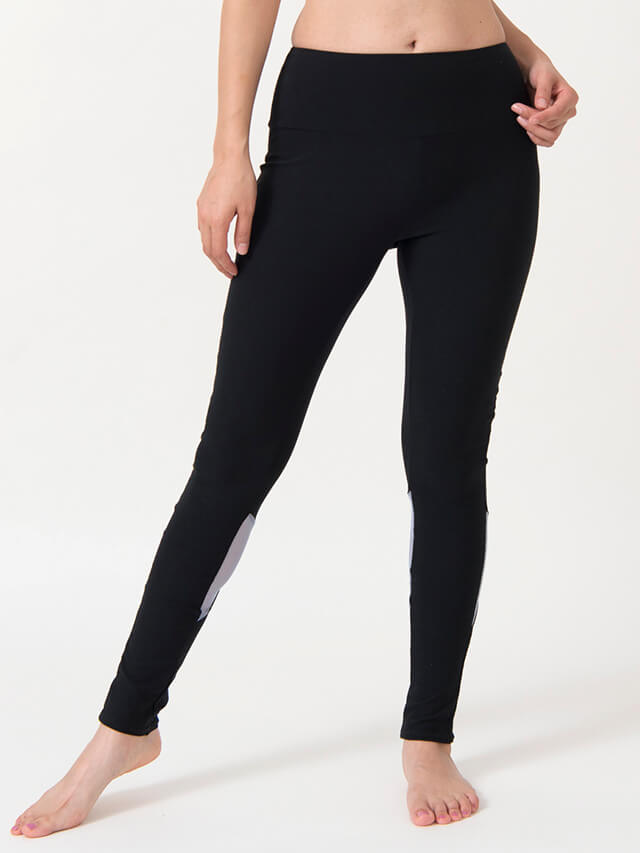 ストレッチ性の高いスポーティーなヨガレギンス。ひざ下サイドからふくらはぎにかけて入ったメッシュがデザインのポイントになるだけでなく、体の熱を逃がしてくれます。適度な厚みとフィット感、股上深めのデザインで動きの多いヨガでも安心です。