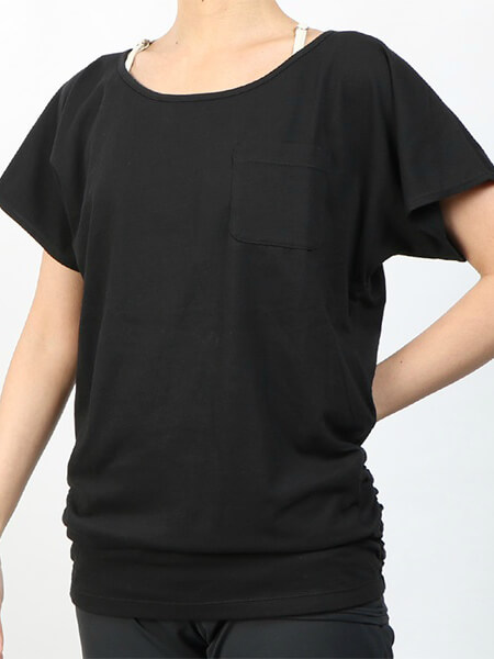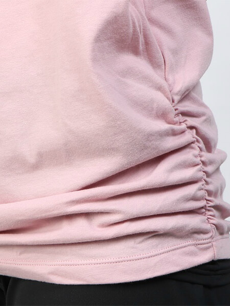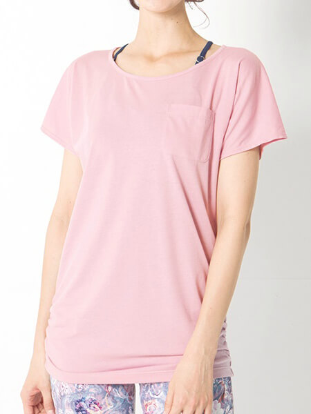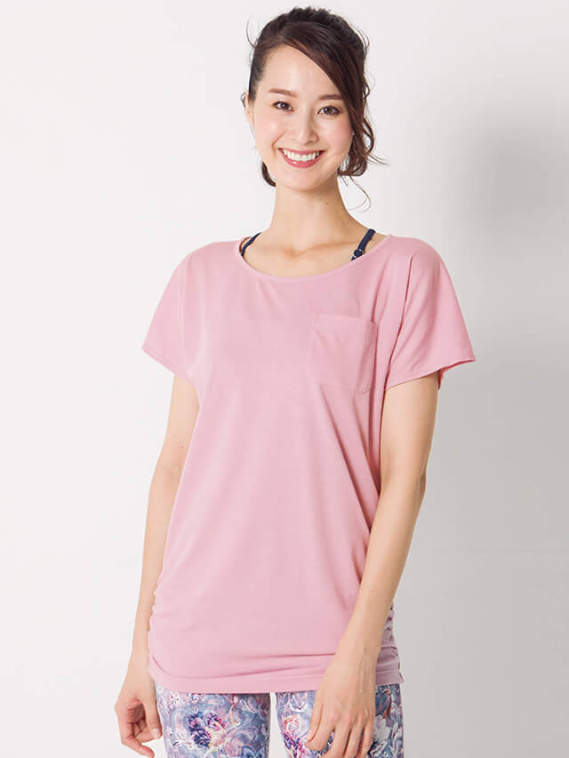 運動能力を効率よく引き出すために研究開発した新シリーズAddElm(アドエルム)。ヨガウェアの素材に配合したことで、ヨガだけでなく、日常生活にも取り入れやすくなりました。ビッグTシャツはゆったりシルエットで身体のラインをすっぽりカバー。腰まである長めの丈は縦長ラインを作り出し、スタイルアップして見せてくれます。素材には綿を60%を配合し、肌あたりが優しくなりました。
