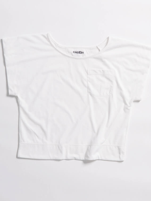 運動能力を効率よく引き出すために研究開発した新シリーズAddElm(アドエルム)。ヨガウェアの素材に配合したことで、ヨガだけでなく、日常生活にも取り入れやすくなりました。ショート丈Tシャツは、ブラ付きキャミソールやタンクとのレイヤードTシャツとして着やすいアイテムです。素材も綿60%を配合し、肌あたりが優しくなりました。