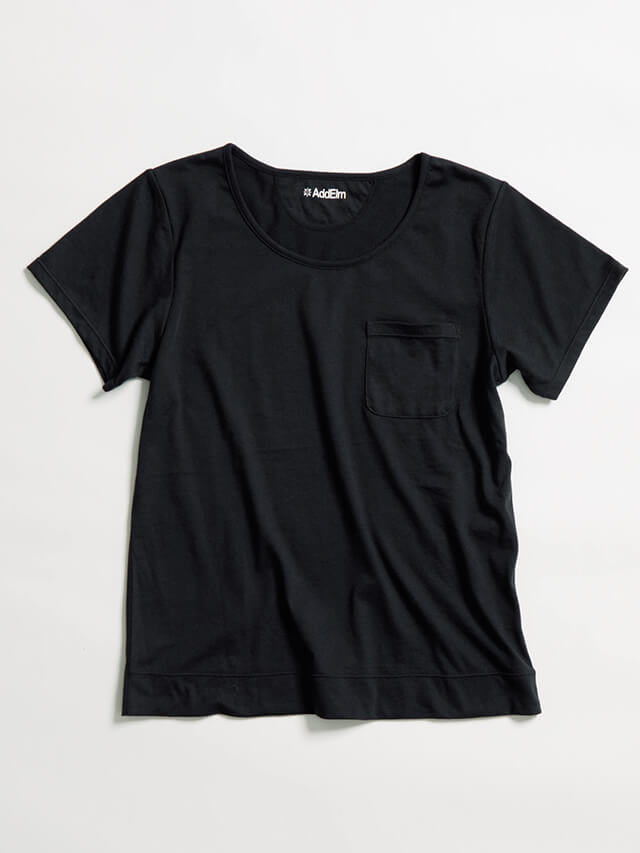 運動能力を効率よく引き出すために研究開発した新シリーズAddElm(アドエルム)。ヨガウェアの素材に配合したことで、ヨガだけでなく、日常生活にも取り入れやすくなりました。特にベーシックなポケットTシャツ型のミディアムTシャツは様々なシーンに取り入れやすいデザインです。素材も綿60%を配合し、肌あたりが優しくなりました。