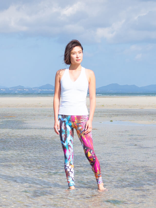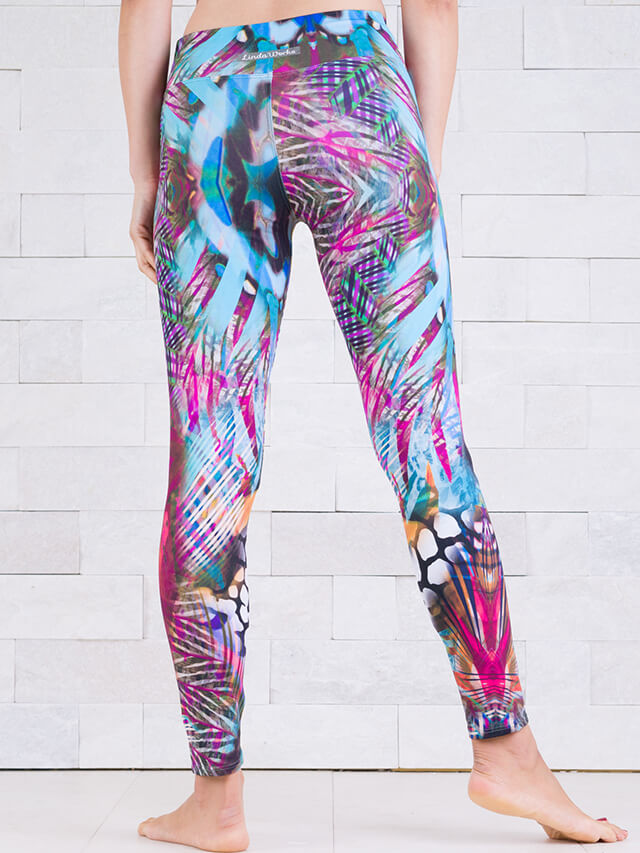 ブラジルの動植物のモチーフを鮮やかな配色で取り入れた個性溢れるレギンス。毎日のヨガの練習がもっと楽しくなりそう。